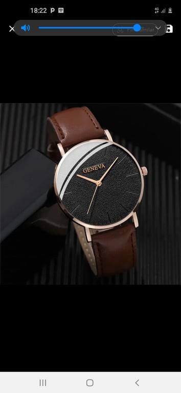 O relógio de pulso masculino com pulseiras de couro marrom tem um design simples e elegante, com um mostrador preto que exibe "GENEVA" em letras douradas. Os ponteiros finos para horas e minutos complementam o estilo sofisticado. Ele está acompanhado por dois braceletes luxuosos: uma pulseira de couro marrom com detalhe de corda trançada à esquerda e um bracelete trançado em couro marrom e preto à direita.