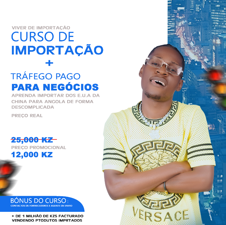 Curso completo para aprender a importar produtos dos EUA e da China para Angola de forma simples e prática. Inclui um módulo exclusivo sobre tráfego pago para alavancar negócios. Aproveite o preço promocional e comece a faturar mais de 1 milhão de Kz com estratégias testadas e comprovadas.